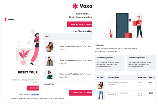 Email Templates are used to gather and nurture leads, communicate with customers and clients. Voxo has 8+ Email templates which include Welcome, reset the password, product review, order success and many more..